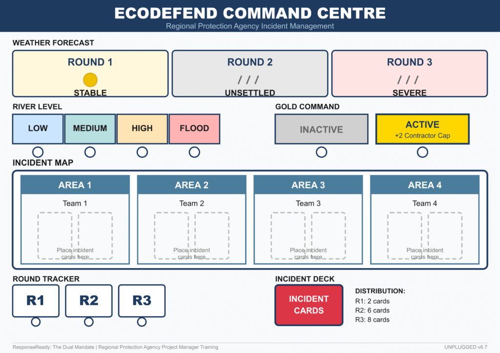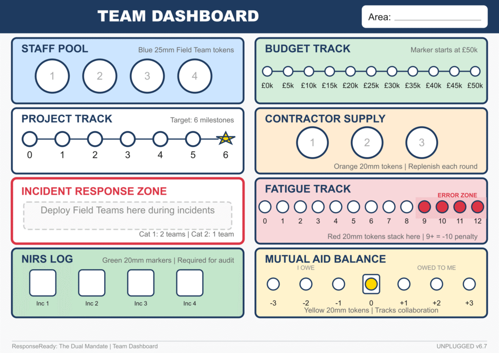 Key Feature: Compliance Debt (The NIRS Log). In the heat of a crisis, teams are tempted to skip the paperwork to “get the job done.” The simulation tracks this via the NIRS Log (National Incident Recording System). If teams fail to log decisions, “Compliance Debt” accumulates quietly—only to detonate during the Round 3 Audit, proving the painful lesson: “If it’s not in the system, it didn’t happen.”